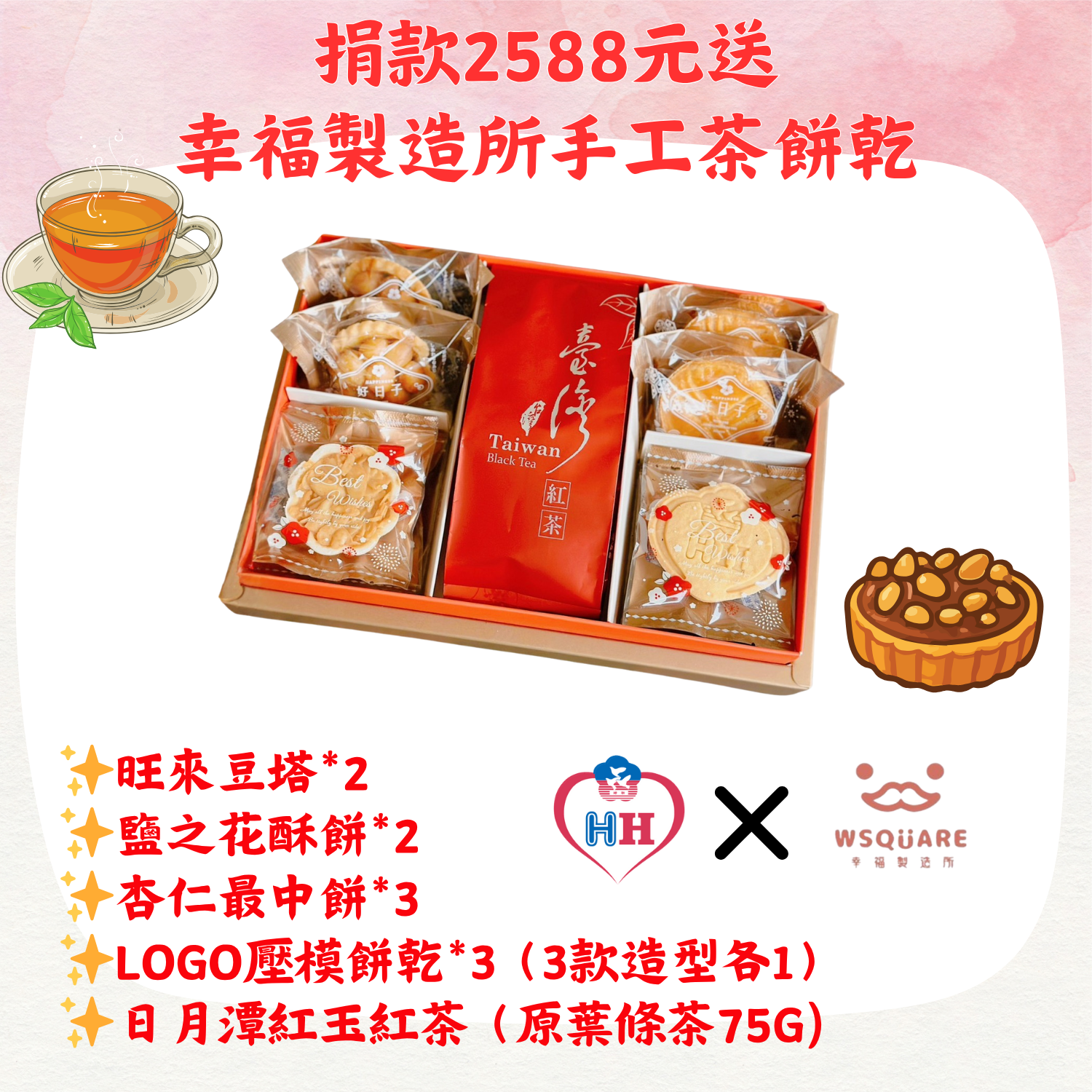 捐款2588元即送手工餅乾紅玉茶禮盒